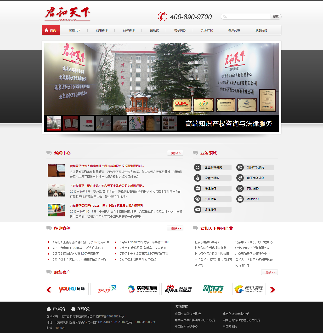 “君和天下咨詢(集團)有限公司”是以北京君和天下咨詢有限公司、中作君和(北京)文化傳播有限公司、君和天下研究院、北京永瑞律師事務所、北京中卡信知識產權代理中心為主體構成的高