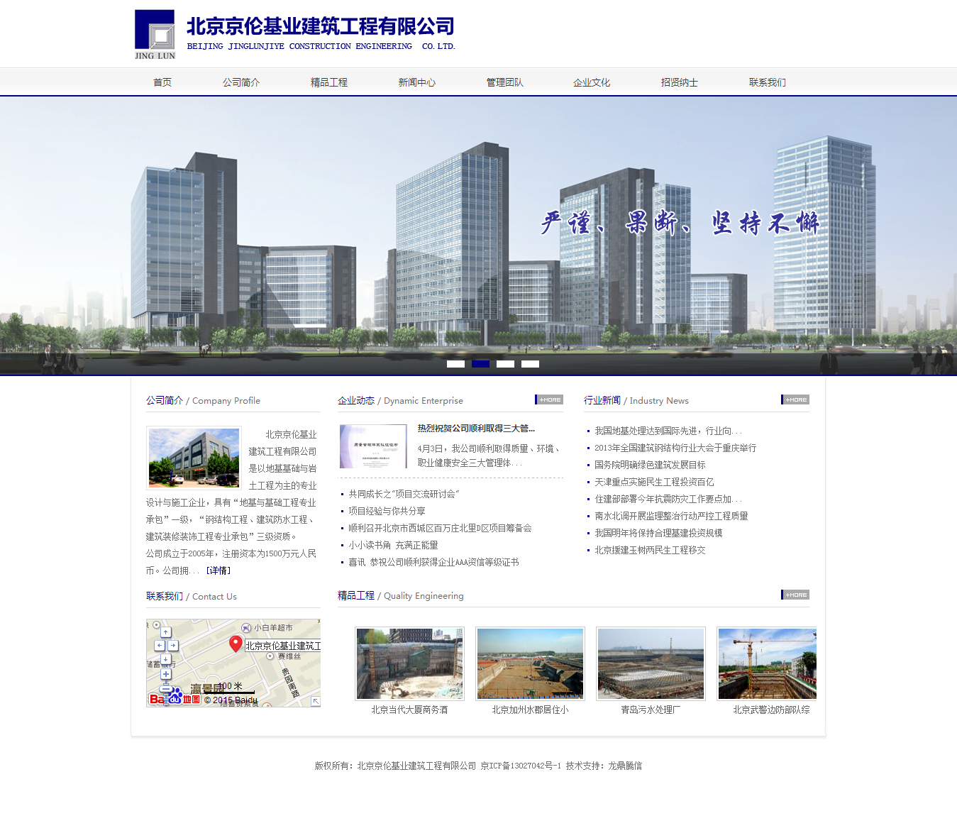 北京京倫基業建筑工程有限公司是以地基基礎與巖土工程為主的專業設計與施工企業,具有“地基與基礎工程專業承包”一級,“鋼結構工程、建筑防水工程、建筑裝修裝飾工程專業承包”三級資